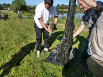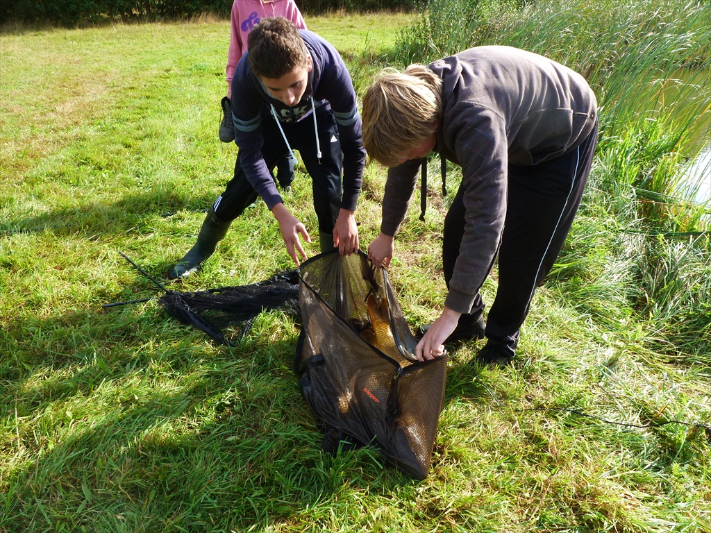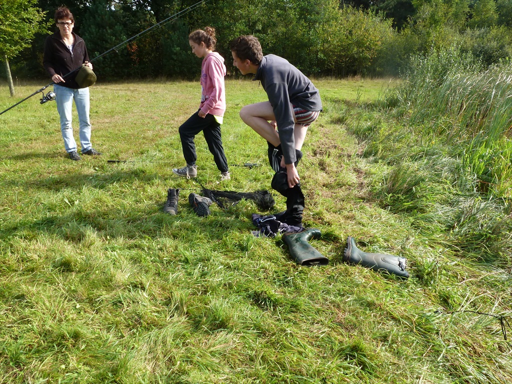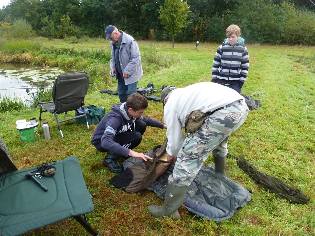 En dat we diep zijn gegaan mag wel blijken door de onverschrokken acties van onze nieuwe generatie karpervissers. Pascal P. had in alle ijver niet gezien waar het gras ophield en de waterkant begon. Moeders moest er aan te pas komen met wat droge kleren. Het ging er allemaal gemoedelijk aan toe en buiten de goede resultaten was het ook een gezellige boel.