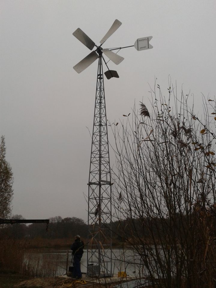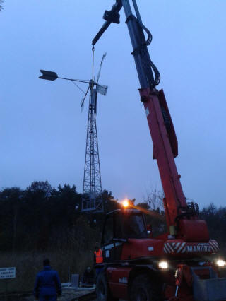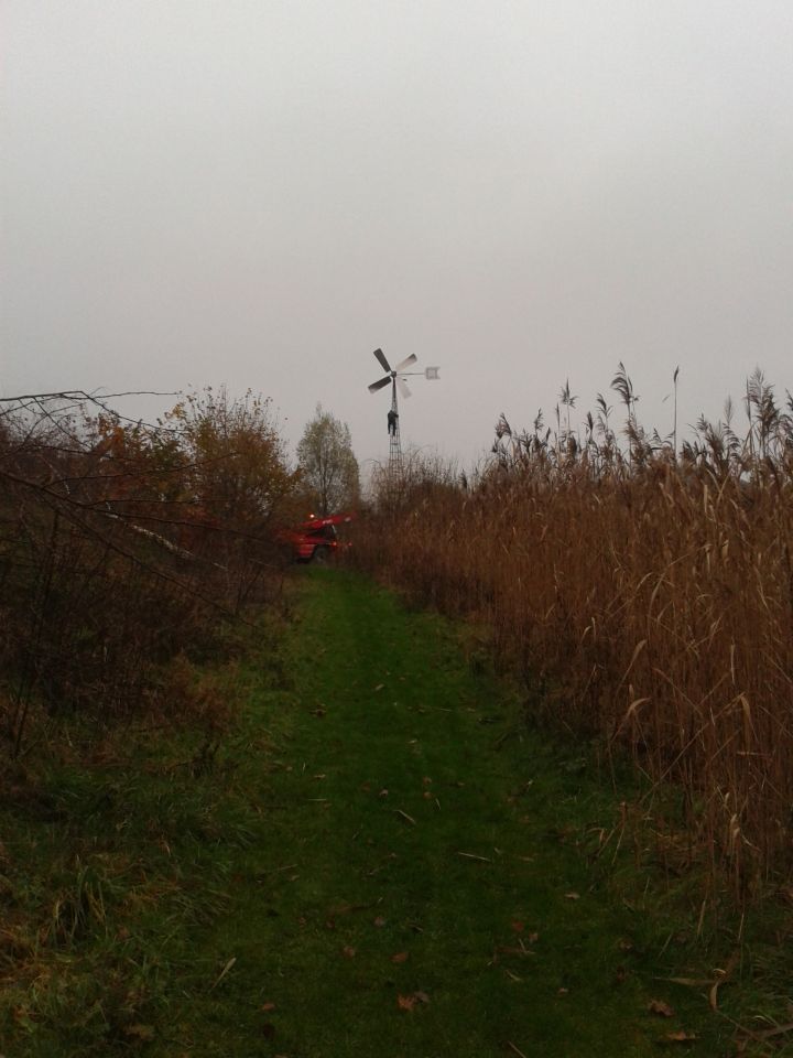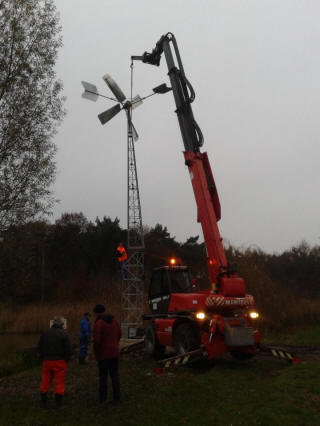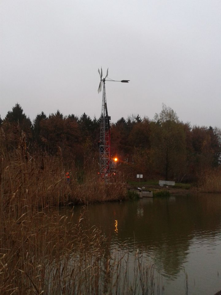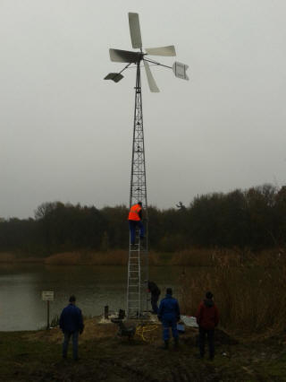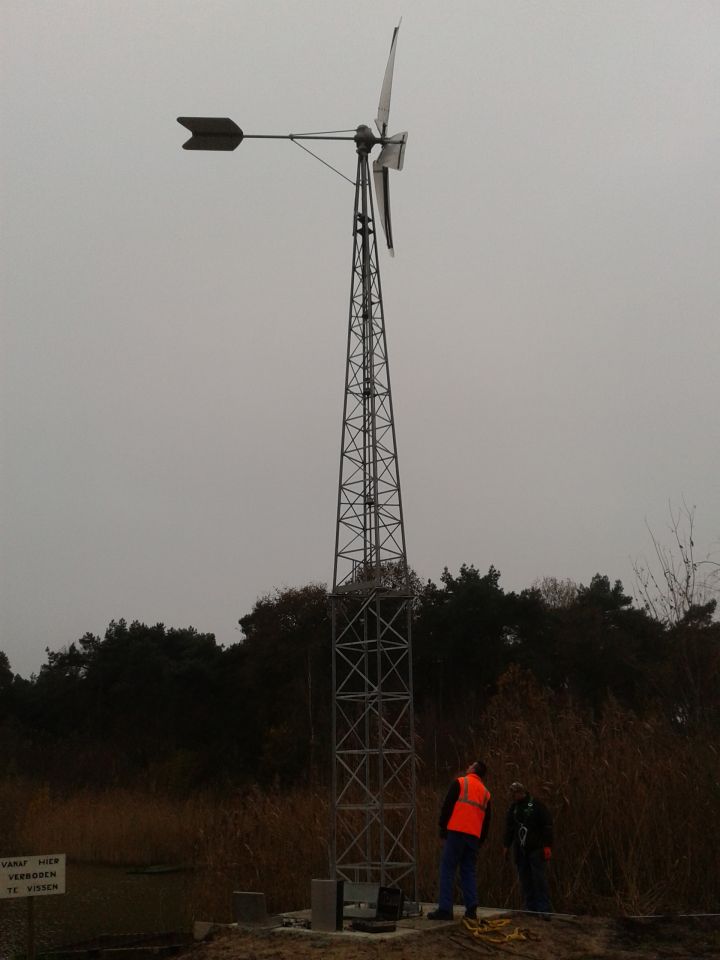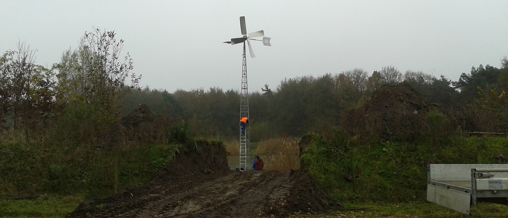 Vanaf december 2014 waait er een hele andere wind in Sevenum. Maar liefst met 4 meter is de windmolen van 't Kampskoêl verhoogd. Na maanden gesteggel en gebrom met gemeenten en de leverancier is de kogel eindelijk door de kerk en steekt de molen nu boven de bomen uit. Het probleem waren volgens de geleerden "valwinden". Daardoor kreeg de molen niet de kans om naar behoren zijn werk te doen. Mocht het onverhoopt niet waaien zal een bijgeleverde motor het werk kunnen overnemen. Zijn we van de hoge waterstanden af? De praktijk zal leren. |