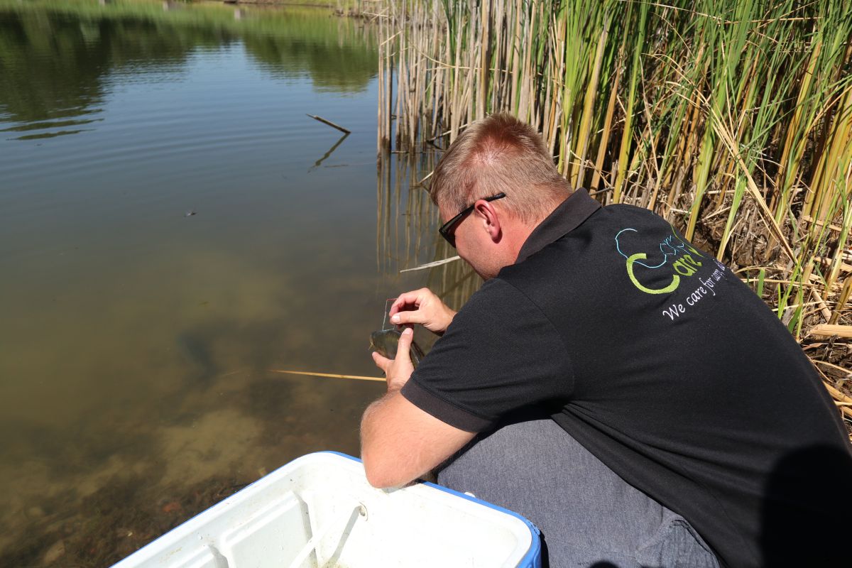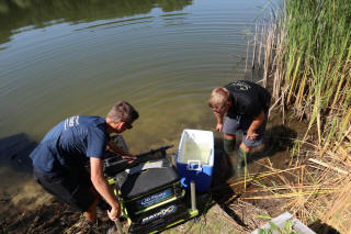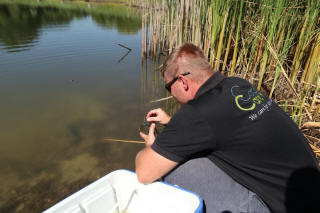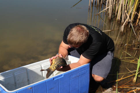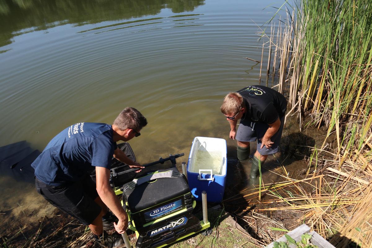 Sevenum 23 juli 2019, Op de afgesproken tijd verscheen de auto van Mark Breedveld (CarpCare) aan het vijvercomplex in Sevenum. Er zou die dag een door Sportvisserij Nederland geregelde controle komen op de Bosrandvijver waar in Maart 2019 400 kilo kleine karpers werd uitgezet, deze controle werd uitgevoerd door de firma CarpCare.