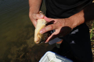 Er werd van tevoren gevraagd of er een drietal karpers in een leefnet klaar konden liggen om gecontroleerd te worden. 8 stuks zaten in het leefnet en deze karpers zijn allemaal door CarpCare onderzocht geworden.