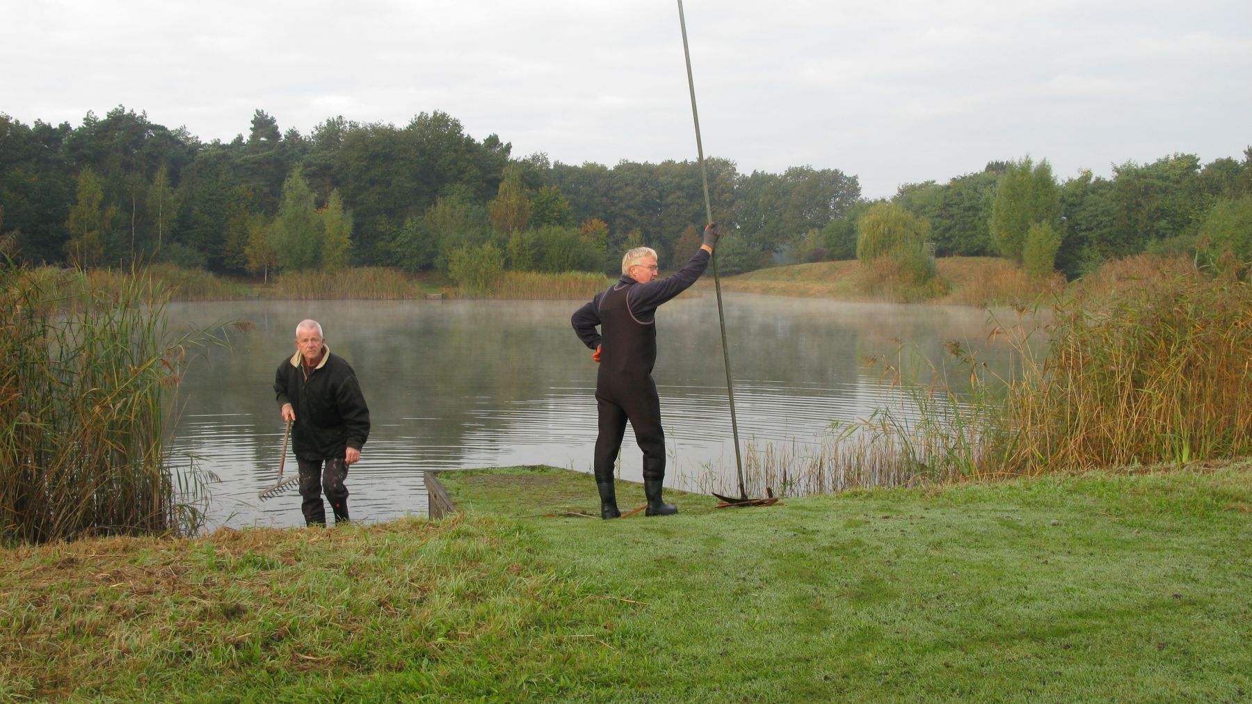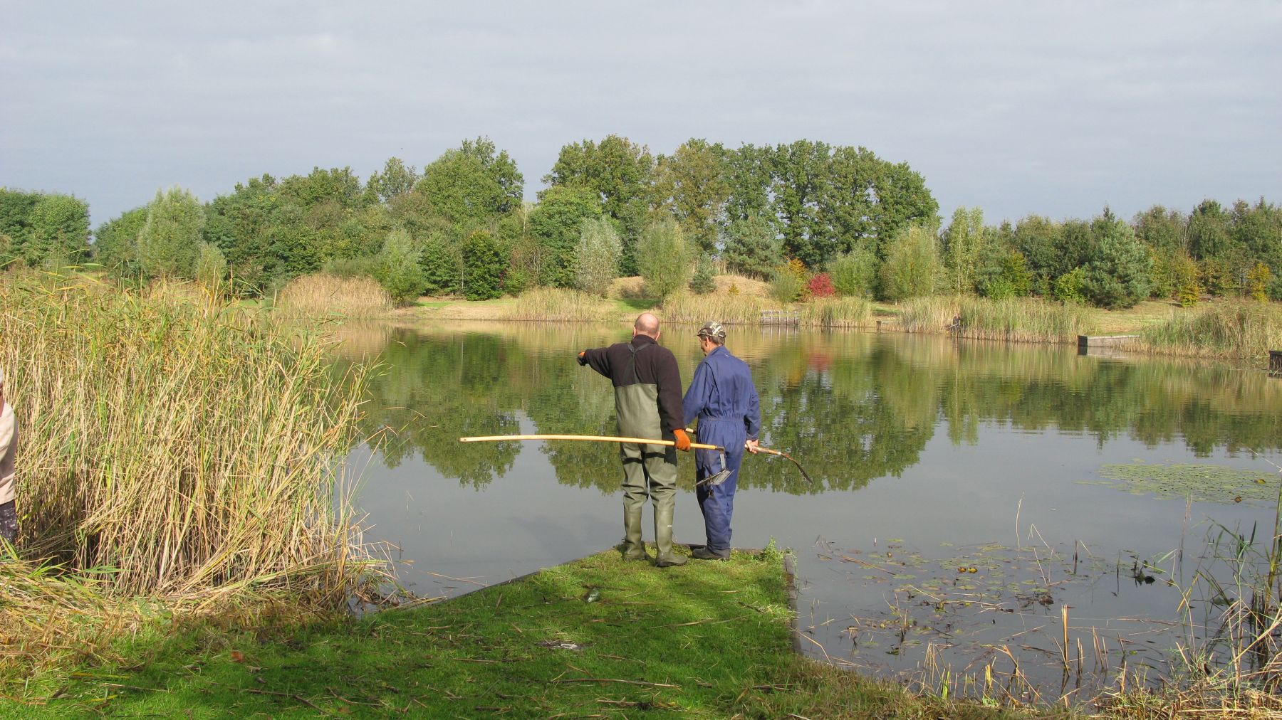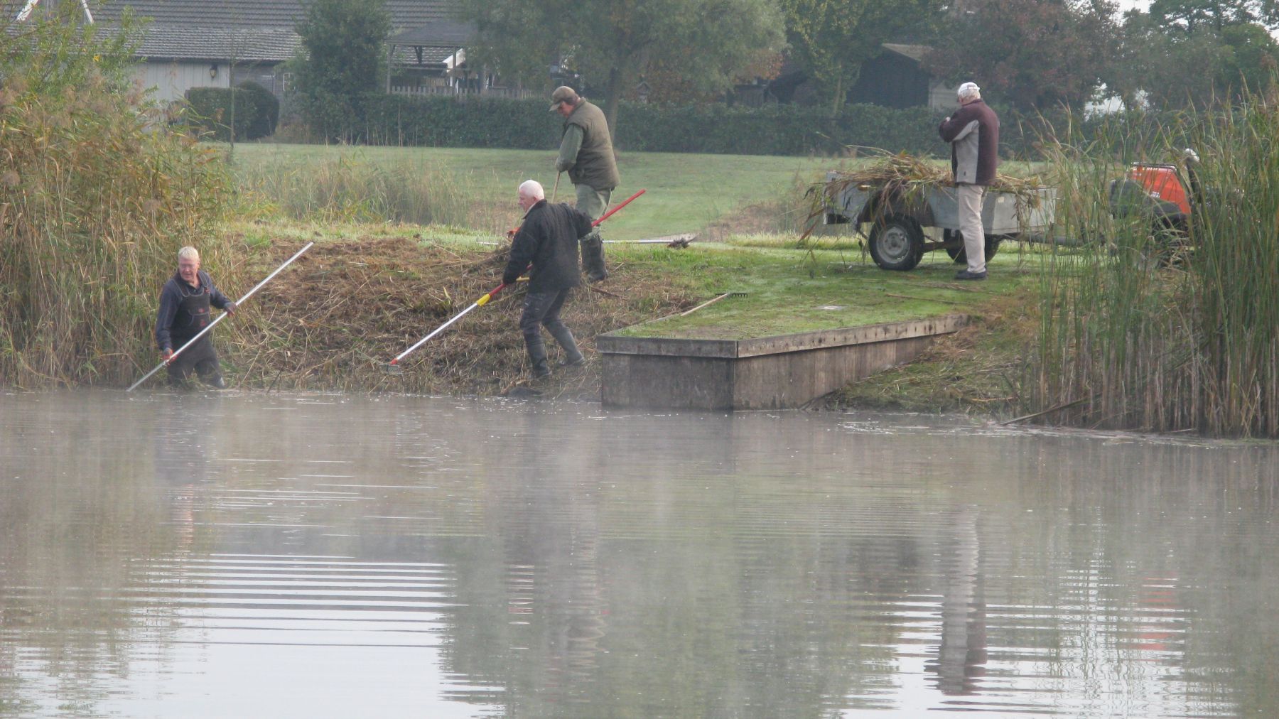 snoeien dat ook bij hoog water de vijver bevisbaar blijft.