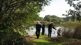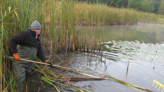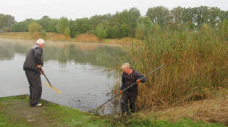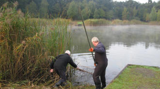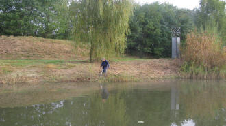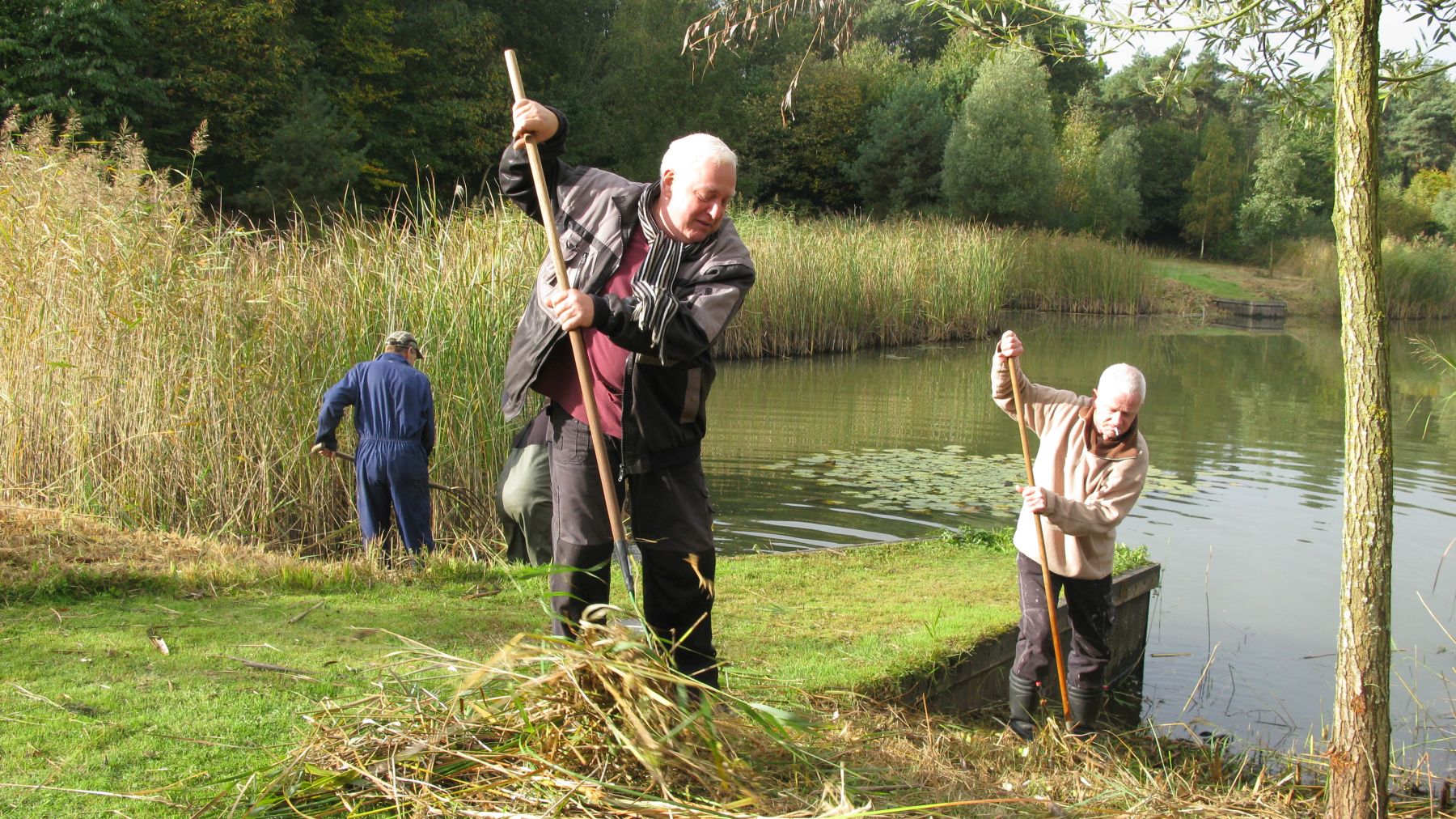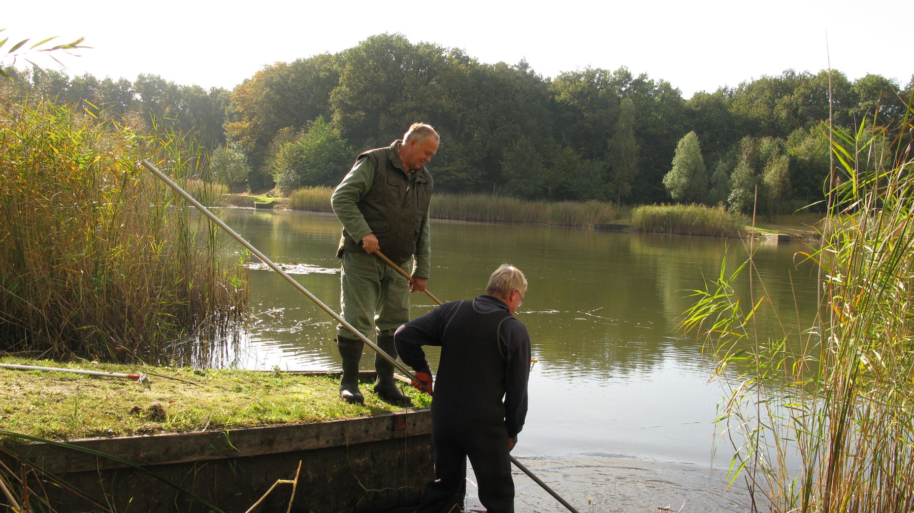 snoeien dat ook bij hoog water de vijver bevisbaar blijft.