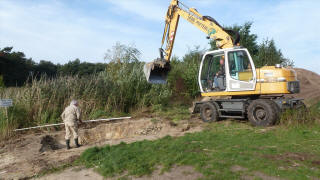 De hoge waterstanden knaagden als een bever aan het been van de hengelvereniging “De Peelvissers”. Na jarenlang denkwerk en discussies met gemeenten is eindelijk de eerste stap gezet. Er komt een windmolen die het overtollige water via een uitlaat in de dichtstbijzijnde beek zal laten afstromen. Wel zo handig dat er enkele vrijwilligers het materiaal en de kennis bezitten om dit in goede banen te leiden. Compliment voor al dit fraaie werk. Hier heeft volgend jaar iedereen plezier van. Karpervissers, maar in het bijzonder de wat oudere witvissers die straks zonder botbreuken of een natte broek hun hengeltje kunnen uitleggen. |