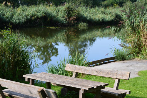 Steigers zijn er voldoende. De visplaatsen liggen verscholen in het weelderige riet. De kleine verharde invalidensteiger direct gelegen aan de schuilhut, is goed bereikbaar met de auto. Aan een zijde van de vijver kun je de auto bijna direct achter de visplek parkeren, maar aan de andere kant zul je toch een stukje moeten lopen om bij het water te komen.