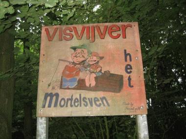 Alleen het bord aan de ingang herinnerd nog aan de tijd dat `t mortelsven voor iedereen toegankelijk was. Zo zat ik hier vroeger ook met mij pa en beleefden mooie tijden. Huub en ik zijn 29 juli 2008 nog eens met een kritisch oog en een fototoestel op pad geweest en hebben geprobeerd het een en ander vast te leggen. Als sportvisliefhebber zou je bijna een traantje wegpikken. De algemene toestand is na jaren van verloedering, bijna onherstelbaar beschadigd. Alleen nog met groot materieel en een bak met geld kun je hier nog iets redden.