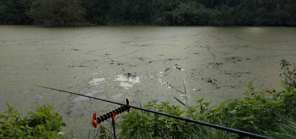 De uit nood herboren oude Kasteelvijvers van Tienraij en Swolgen hebben dit jaar alsnog voor enkele uurtjes visplezier gezorgd. De eerder opgeheven wateren hebben dienst gedaan om vis van de Gubbels vijver een tijdelijke plek te geven zodat ze op een later tijdstip naar de nieuwe vijver van “Willem Een” kunnen worden overgezet. Hier mag worden gevist (met vergunning) totdat de nieuwe visvijvers operationeel zijn. We hebben deze nostalgische oudere wateren dit jaar nog enkele keren bezocht. Een uitdaging was het wel, gezien de wat ruige omgeving. Veel takken in en om het water maakten het extra spannend en de waterkroost lag als een dikke groene deken op het water. Om hier met een lichte hengel te gaan vissen vereist wel wat ervaring. Ervaring die je nooit genoeg kunt hebben. Op beide vijvers hebben we een aantal keren succesvol gevist. |