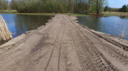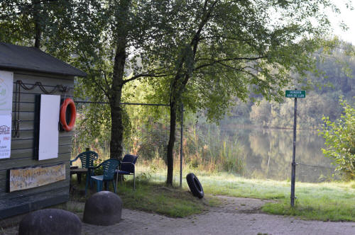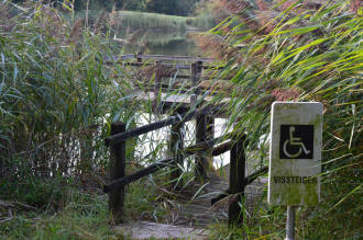 De toegankelijkheid naar de waterkant is oke. Er zijn diverse parkeerplaatsen. De invalidensteiger ligt vooraan de vijver. Deze hangt een stuk over het water wat een heel apart gezicht is. Door de schuine kanten op de oevers kon het soms wel eens lastig zitten zijn. Vandaar op het witvis gedeelte wat losliggende ietwat gammel ogende visvlonders zijn aangelegd. Gelukkig heeft de karpervisser hier geen last van. Die kan zonder moeite overal terecht. Het onderhoud is gezien de oppervlakte oke maar niet geweldig. |