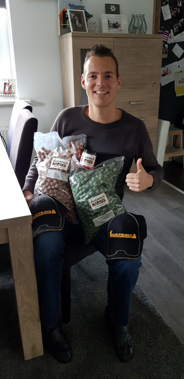 Gefeliciteerd Michel! Prijs, een zeer hoogwaardig Boiliepakket van Attackbaits met natuurlijk de bijbehorende cap's! |