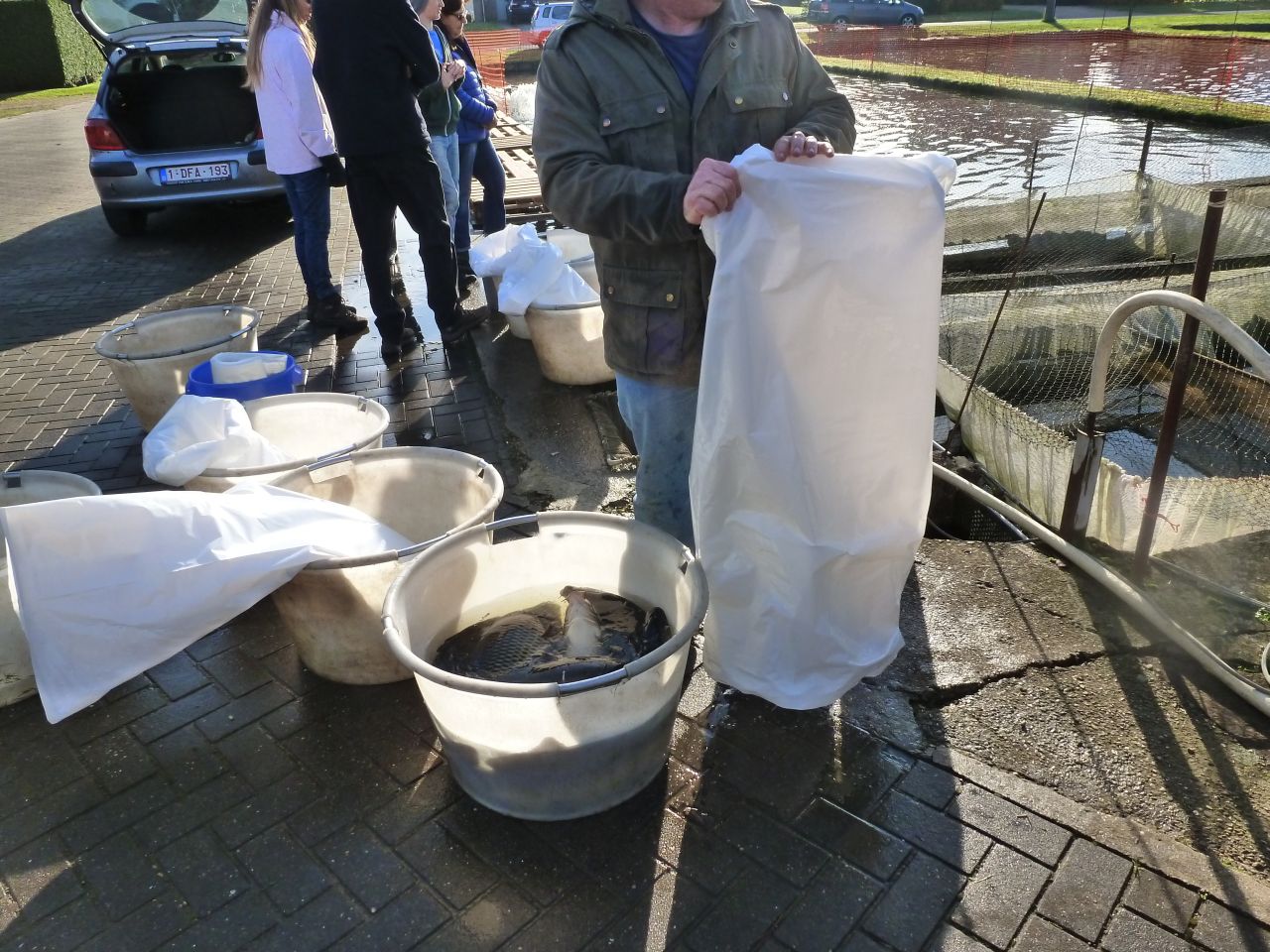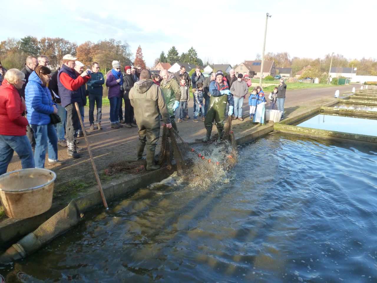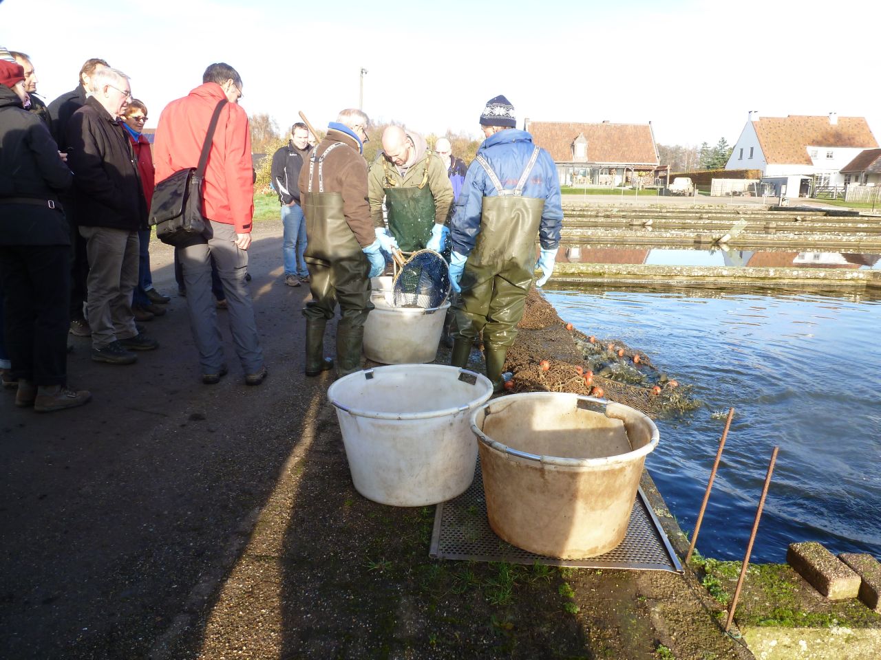 Ongelofelijk wat een grote hoeveelheid water dat er is de omgeving is om vis te kweken voor de hengelsport. Maar het gekke ervan is dat je gewoon ...langs de straat kunt kopen , per stuk of in grote getale maakt niks uit. Als je wat gekocht hebt word het in een grote plastic zak gedaan , wat lucht erbij en klaar is kees..... meenemen die vissen. Moet er wel bij zeggen dat het hele mooie (schoone) vissen zijn. Zeker de moeite waard om ze in je visvijver te hebben.
